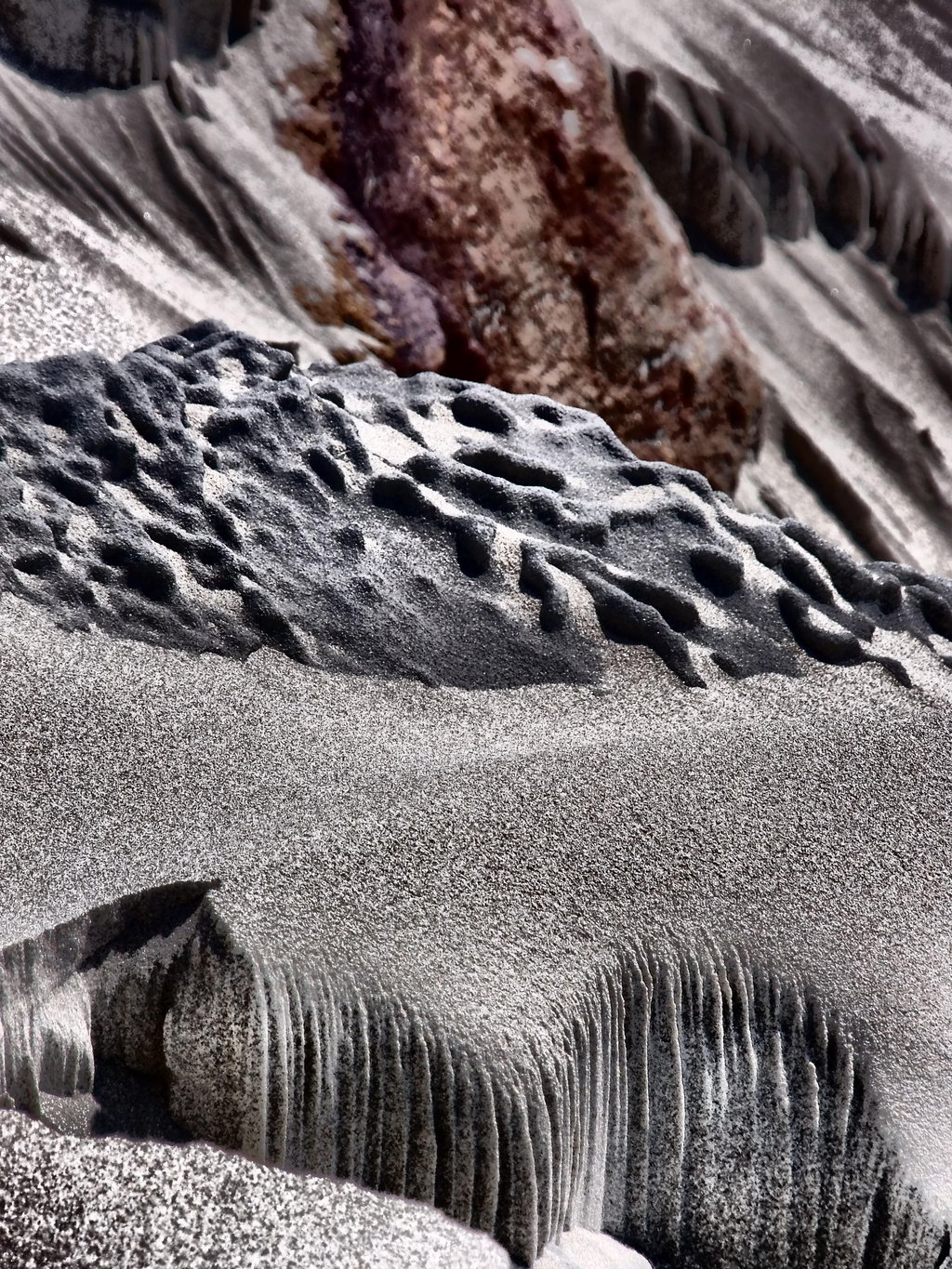 This was taken in Florence, Oregon. Wind and water erosion have created this abstract sculpture in the sand. I would love to have documented how it changed over the course of a week, but we were only there for the day.