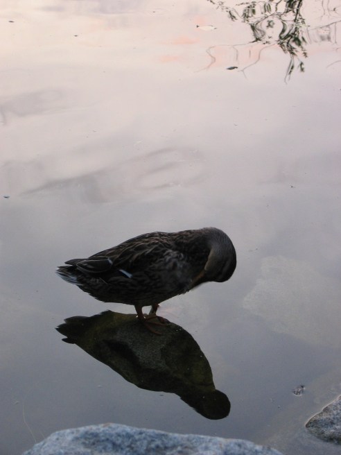 I found these photos, while I was clearing an old hard-drive. It was a lovely sunset, and she was very patient with me invading her privacy to take the pictures. The ducklings didn’t come out of hiding until the end.